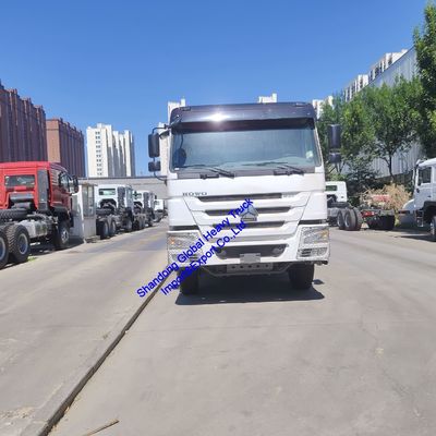 De HOWO 6x4 is aangedreven door een Euro II motor van 371 pk en biedt een sterk koppel en brandstofverbruik.het verzekeren van een stabiele werking over lange afstandenDe versterkte voor- en achterassen (9T + 2×16T) met naadverminderingsfunctie bieden een uitstekend draagvermogen en offroadprestaties.